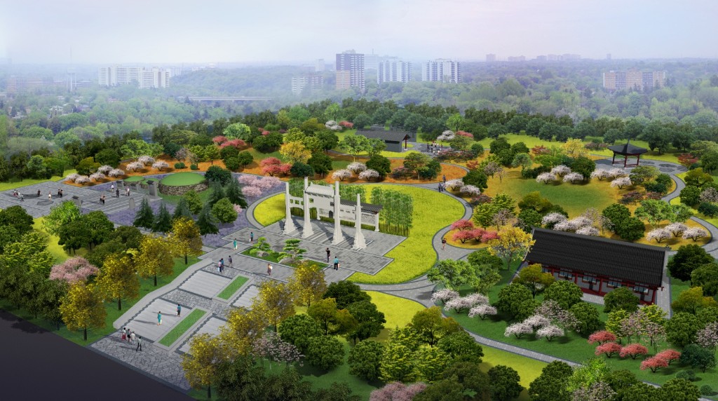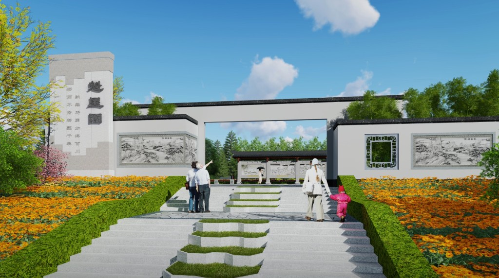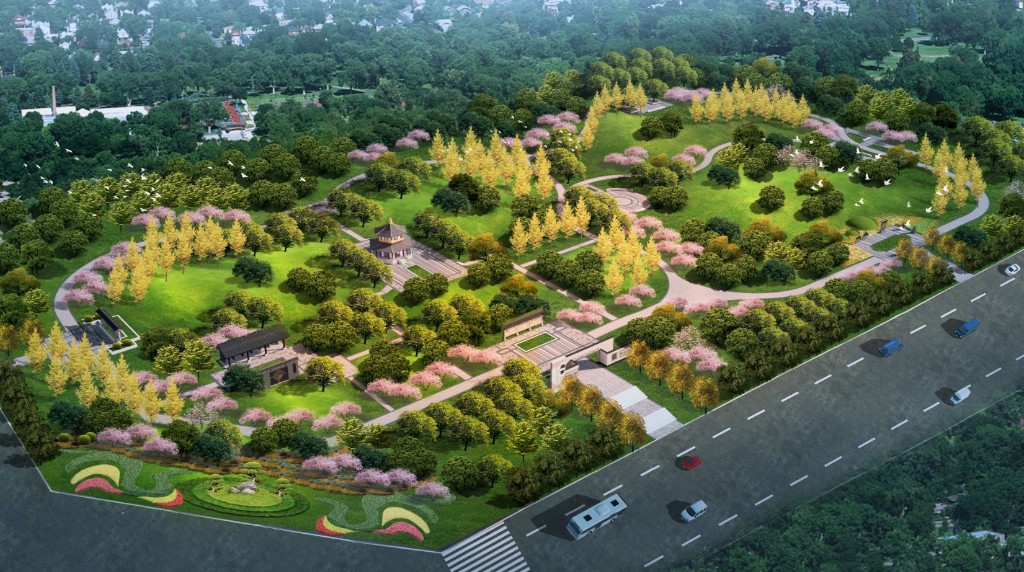 以春秋戰國的歷史故事,“君何患焉?若闕地及泉,遂而相見,其誰曰不然”“大隧之中,其樂也融融”的孝道精神為設計切入點,同時體現五常之“仁、義、禮、智、信”的品德理念 , 傳播華夏文化之精髓。汲取其中元素,層層流暢的弧線植入到本次設計,形成曲徑通幽的環路。展現一個流動自然、同時具有文化底蘊的游園。