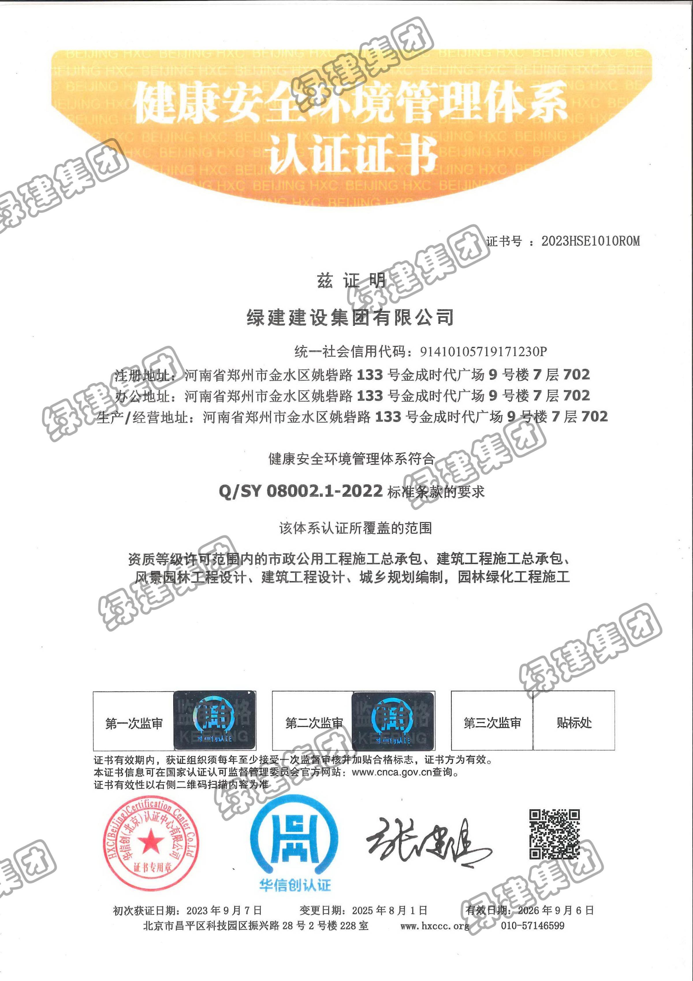 HSE健康安全環境管理體系認證證書(08002.1-2022)